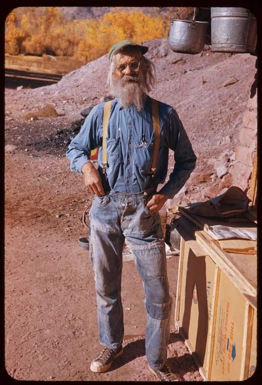 On November 4, 1952, while traveling through southeast Utah, Charles Cushman encountered Jack Holley and his many critters. Cushman paused long enough enough to chat with ‘The Goat Man” and took these remarkable color images. It’s interesting to note the date—on this day Dwight Eisenhower was elected President of the United States. Here in Moab, Utah, with Jack Holley, politics and the 20th Century must have seemed very far away…JS