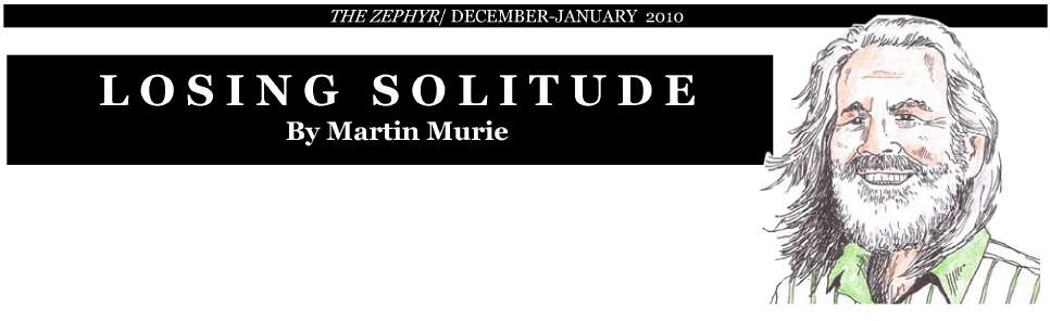 with the shreds of a lifestyle that is strangling the planet. I am learning from Bonner McAlles- ter who writes an honest column in the Monterey News in Massachusetts. She is actively, not wait ing around, reducing her personal footprint, using public trans port, walking to buy food, taking home-grown produce with her as she journies from home. So far I have walked to the post office to buy stamps and to the hardware to buy light bulbs. I hope to learn more. These little ventures are practice for the huge changes in life style that lie ahead of all of us. My