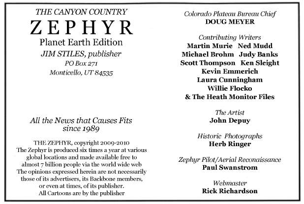 accompanied the October/November issue's web posting. Ultimately, we got the Zephyr online and for those of you who were happy to see the end of the PDF downloads, I could not agree more. But if future efforts to make such changes prove to be as difficult and labor intensive and exasperating as this one was, I'd never try it again. And I would go broke as well. For