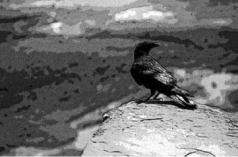 Raven squawked, jerked its beak in a circle, casting an odd shadow on