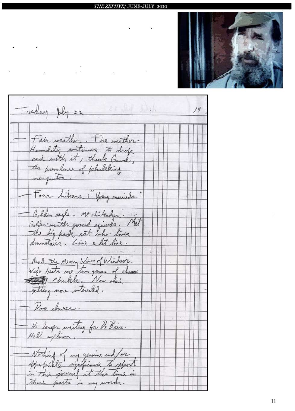 An excerpt from Ed’s fire lookout journal at Numa Ridge near Glacier National Park...