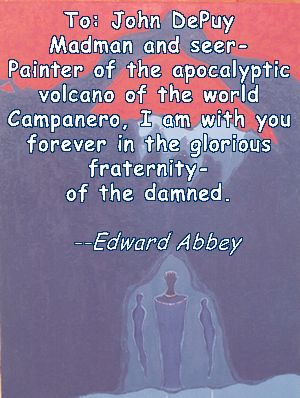 To purchase artwork, send a written request directly to the artist. Please include your name, address, phone number and the name of the painting you are interested in: John DePuy P.O. Box 441 Ojo Caliente, NM 87549 Email: johndepuy@yahoo.com Note: John does not have a computer, so you are actually sending an email to the Zephyr Webmaster. The emails are printed out and mailed to John snail mail. If you send email, please include your mailing address, so John can respond. Or leave a message at: Phone: (505) 690-3662 |