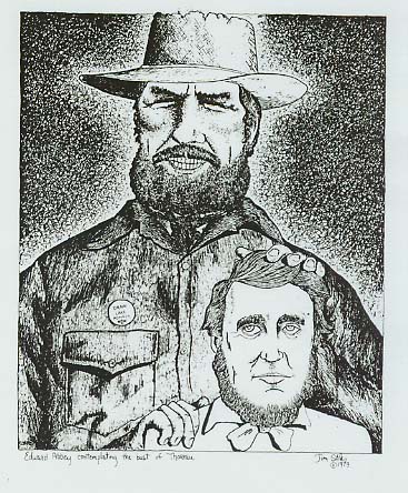 Damn! There I am again, remembering old wars, in the shadows of newer ones. Frederick Douglas called the Mexican invasion a "disgraceful, cruel war." Daniel Webster ranted against it. U.S.Grant, future president, then an army lieutenant in the invasion force, participated in the capture of Mexico City, regretted that "I had not moral courage enough to resign." The 1848 treaty negotiator, Nicholas Trist, who presided over transfer of huge chunks of northern Mexico to the United States, wrote that he felt "shame as an American." The lie used by President James Polk to cross the border in full force was that a skirmish of U.S. and Mexican patrols had shed American blood on American soil. The truth was that the blood was shed 150 miles south of the Texas border. (Neuces River). Congressman Abraham Lincoln asked for the precise location of shed blood, received no reply. Congressman John Quincy Adams publicly urged military officers to resign and soldiers to desert. Thirteen percent of the regular army did desert, a rate twice that of the Vietnam war. Some Irish immigrant draftees not only went AWOL, they formed the Saint Patrick’s Battalion and fought on the Mexican side. They took heavy casualties; most of the survivors faced a firing squad at war’’s end. In 1861 France, having taken Algeria and Vietnam, went into Mexico and shipped in an archduke from Austria to be emperor. And so on; there’s more, but that’s enough. I mention these events because I have to, and because I am a member of ASLE, an organization with global outreach that tries to cross academic boundaries. War should not be exempt from such crossings, especially when war has grown into a voracious environmental bulldozer run rampant. As an indication of ASLE’s effort, the four topics of the seminar entitled "Henry David Thoreau, Part 1," were as follows: Thoreau, nature and poetic language; Thoreauvian activism, exemplified by Long Island Baymen’s defense of their livelihood; an analysis of Thoreau’s writing about Ktaadn, suggesting that he recognized certain areas of our planet not suited for human dwelling (Remember Ed Abbey having a similar thought?); and my piece on relevance of Thoreau’s north woods and Cape Cod essays to current literary/environmental work. It was a good meeting, lots to think about. ![]() Edward Abbey Contemplating the Bust of Thoreau... By the way, Thoreau’s north woods essays are being translated into Japanese. Here’s my seminar contribution, an attempt to link Thoreau’’s amazingly modern attitudes, by referring to Ellen Meloy’s bold writing and to Val Plumbwood, an equally forthright writer from Australia who describes herself as "a crocodile survivor." (Yes, I too would like to know what that means). In one of the famous passages in The Maine Woods where he confronts Nature in the raw, Thoreau writes: "... It was Matter, vast, terrific -- not his Mother Earth ... not for him to tread on, or be buried in,--no, it were being too familiar even to let his bones lie there--the home this of Necessity and Fate." (1) But at Cape Cod, where he senses the Ocean is at least as wild as the wildest north woods, we find him standing at remnants of a drowned human: "... as I stood there they [the bones with some adhering flesh] grew more and more imposing. They were alone with the beach and the sea, whose hollow roar seemed addressed to them, and I was impressed as if there was an understanding between them and the ocean which necessarily left me out..." (2) Contrasts like this are a recognized Thoreauvian manner: every encounter creates its own flavor, its sensual and emotional individuality, its own cluster of thoughts. The particularity, the individuality of experience, this is the thread I’m following, a thread that is especially clear in the north woods writings. Here we have three journeys into a country where the living is not easy. Thoreau and his companions encounter blackflies, mosquitoes and no-see-ums; they scramble through swampy down-timbered portages, run rapids or pole a bateau upstream in rock-strewn currents; they look for camp sites on shorelines dominated by oppressive, closely ranked growth. Coming to a lake is to reach a most welcome clearing in the endless forest. From those arenas of struggle we receive, let us say, reports. "... we heard come faintly echoing or creeping from far through the moss-clad aisles, a dull dry rushing sound, with a solid core to it, yet as if half smothered under the grasp of the luxuriant and fungus-like forest, like the shutting of a door in some distant entry of the damp and shaggy wilderness. If we had not been there no mortal had heard it. When we asked Joe in a whisper what it was, he answered, ‘‘Tree fall.’’ The report continues with a comment: "There is something singularly grand and impressive in the sound of a tree falling in a perfectly calm night like this, as if the agencies which overthrow it did not need to be excited, but worked with a subtle, deliberate, and conscious force, like a boa constrictor, and more effectively than even in a windy day." Then, as if to undercut the fanciful interpretation, a prosaic finale: "If there is any such difference, perhaps it is because trees with the dews of the night on them are heavier than by day." (3) In that passage, in muted form, are some of Thoreau’s writing habits: extravagantly precise description, the imaginative interpretation, the matter-of-fact statement. But his quiver holds more than that. "This was what you might call a bran new country; the only roads were of Nature’s making, and the few houses were camps. Here, then, one could no longer accuse institutions and society, but must front the true source of evil." (4) This bare-boned shocker is preceded, nine lines up the same page, by a sentence nearly pastoral: "The evergreen woods had a decidedly sweet and bracing fragrance, the air was a sort of diet-drink ..." Locked in north woods travel, Thoreau "front
