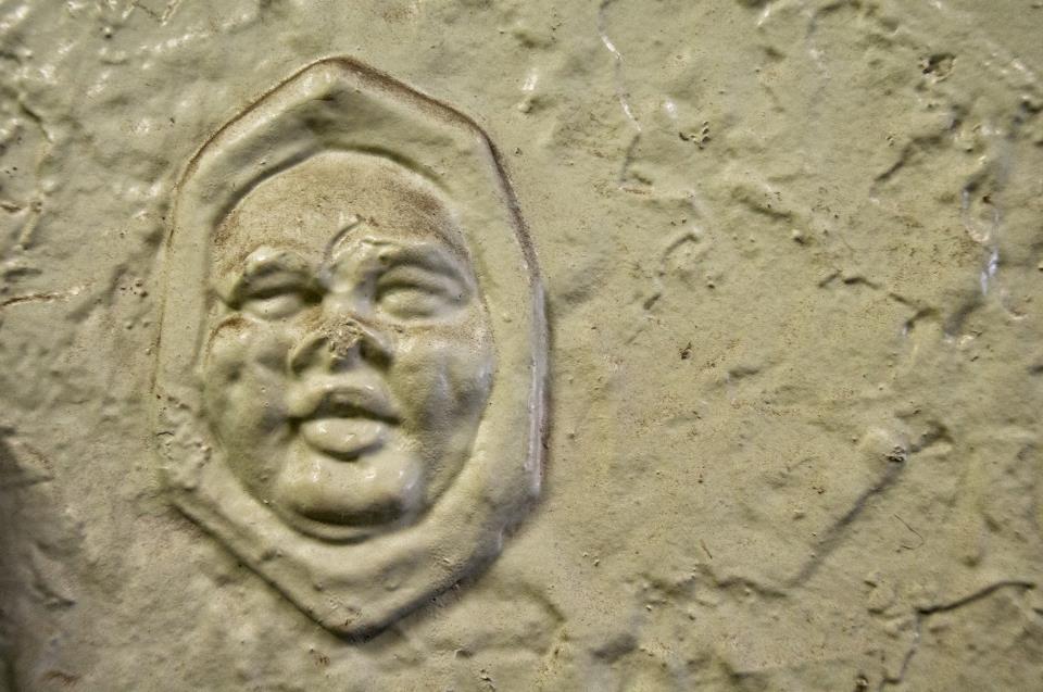 I was heading to visit a sound guy for a film I was working on in another lifetime. He lived in an old building on Ocean Parkway, in Brooklyn, that might be termed a “super tenement,” a tenement that had more amenities and wider hallways than the usual type. Some thoughtful builder had once thought to plaster this face into the wall about 80 to 100 years ago and there it sat, waiting for me to come along. I like the guy and often try to divine what’s on his mind.