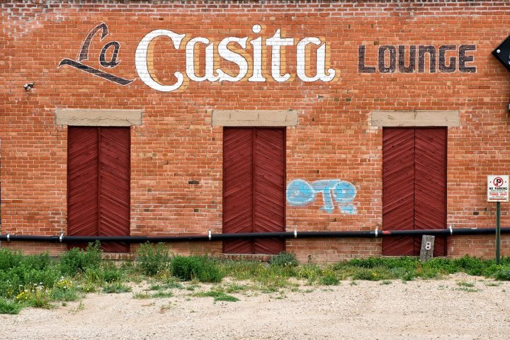 Las Vegas, New Mexico. A town that I first frequented, as with so many others, because there’s a hot spring there. I’m not saying where, even though it’s public knowledge. You have to find it for yourself. It’s that horrible conundrum of wanting to share the cool stuff, but destroying it by doing so. I had not really explored the town much before, just blew in, soaked, and then moved on to the next hot spring. This time, though I slowed it down a bit and, as always when I slow it down, I started to see more and more stuff. This was next to one of those ancient drive-through banks that, at one time, were considered the height of modernity and convenience. Someone stopped, as always, and gratuitously commented on my van, which has a lot of crap bolted on to it. I was polite – I think – and then turned my head and saw La Casita. I like a good lounge. I wonder if it’s still operation.