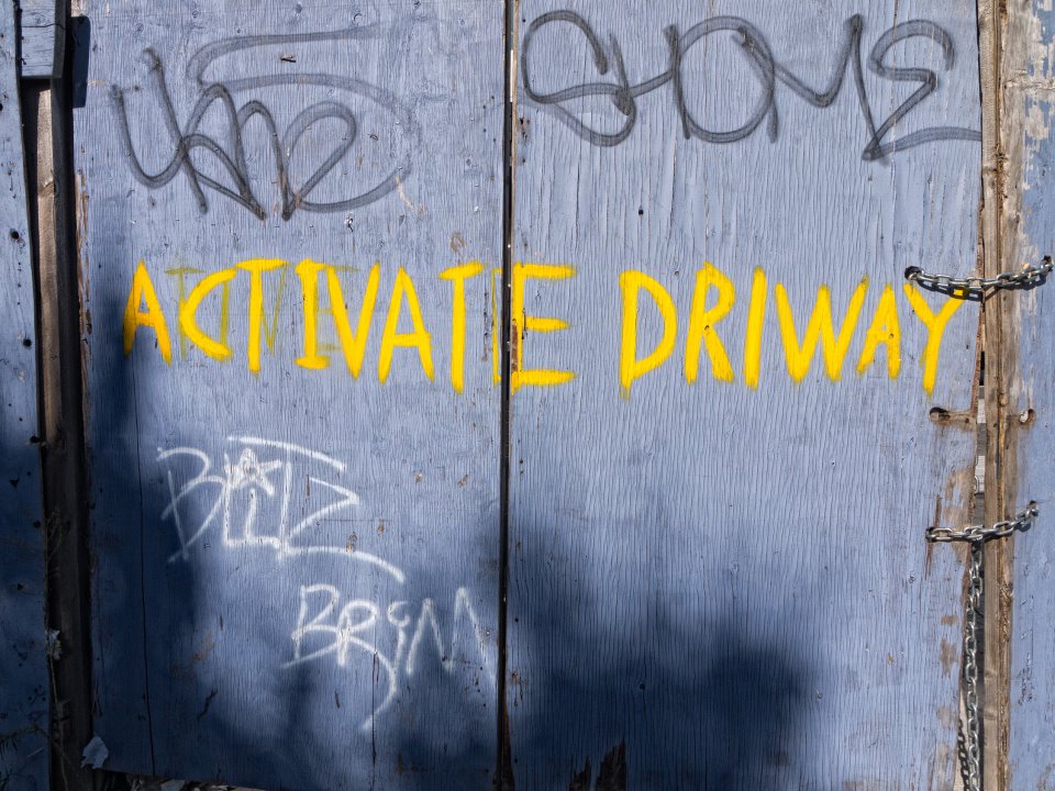 I snapped this in the outer reaches of Brooklyn during a century bike tour. I love the NY Century tour as it shows me stuff I never knew existed before. Brooklyn, for those who have never been there, has a remarkably varied geography and architectural diversity, as well, from oceanfront to Superfund canals to ghetto to super-rich neighborhoods. This was just a random driveway with a clever hinge made of chains and spelling that may not be correct in the King’s English, but sure as hell gets the message across. Then again, it could be a message. Then again, it might be Queens and not Brooklyn.