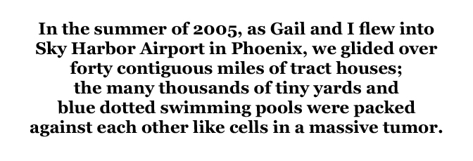 In the summer of 2005, as Gail and I flew into Sky Harbor Airport in Phoenix, we glided over forty contiguous miles of