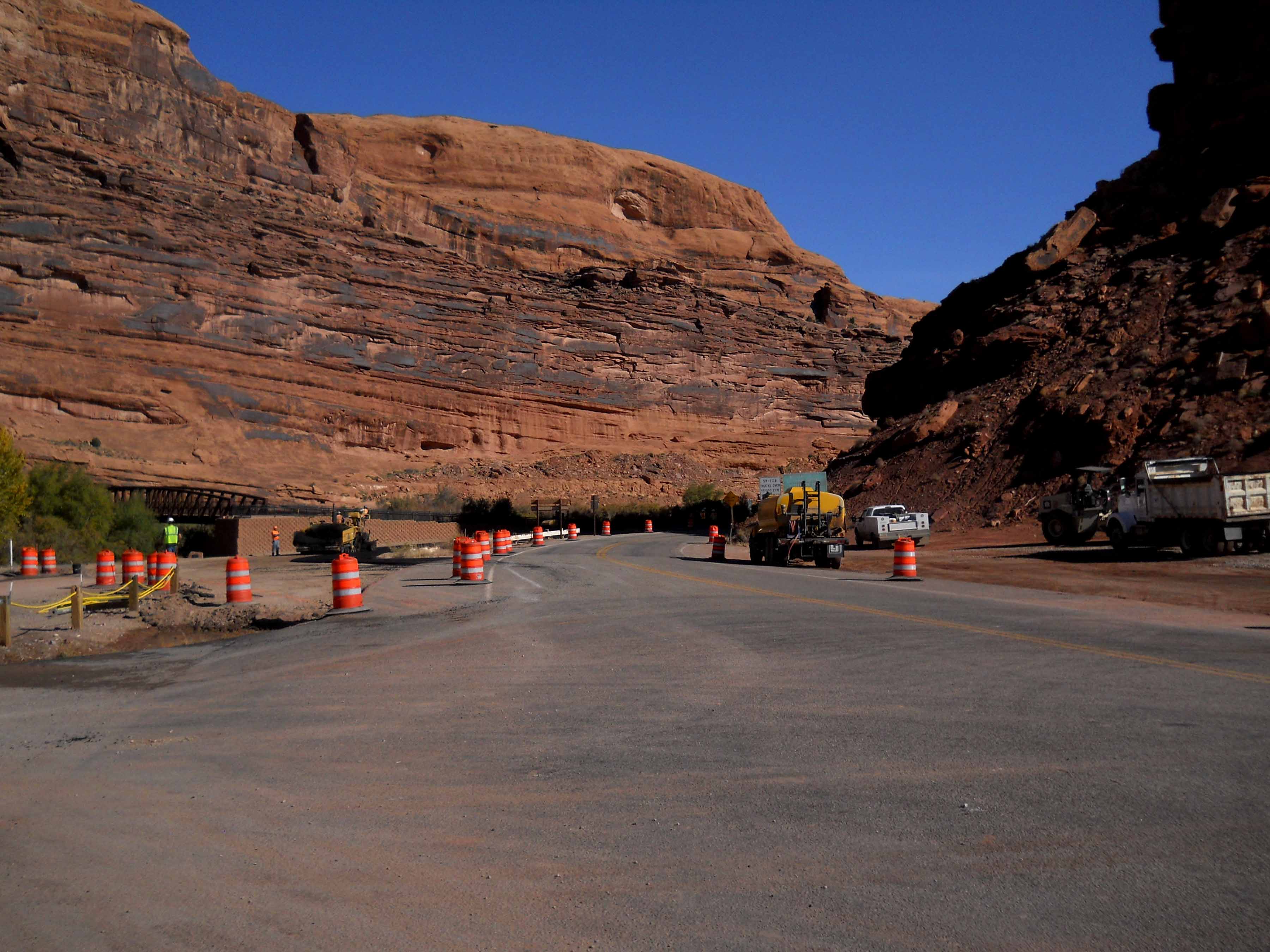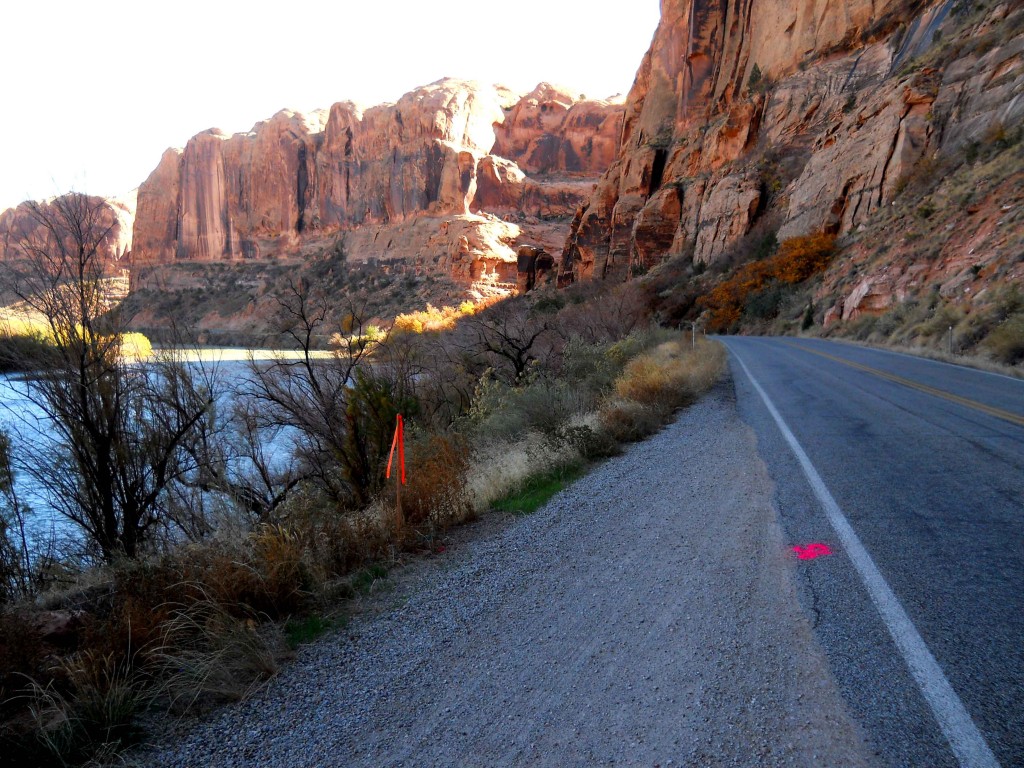 Here are some photographs we shot of those first two miles as work began. Note the neon flagging…