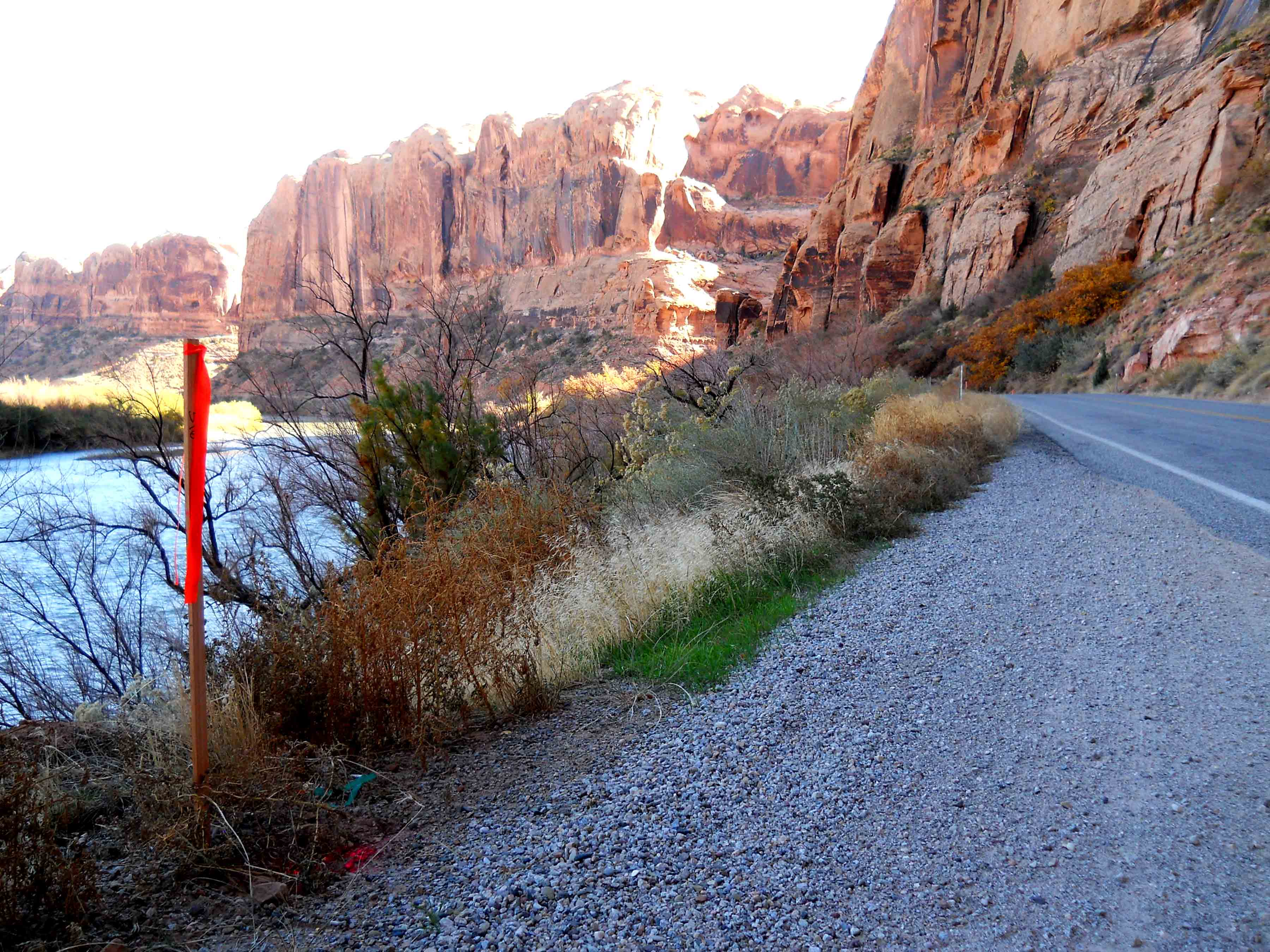A year or so from now, when this project is finished, we’ll give you Before & After views, so you can see the changes. Whether you like this project or you hate it, the river road is going to look different. The Elevated Bikeway will stop about a half mile from its intended end, for lack of funds. Proponents are still looking for another $2 million to extend the Bikeway to the mouth of Negro Bill Canyon. According to its fans, there are no current plans to extend the Elevated Bikeway further  up the river road….JS