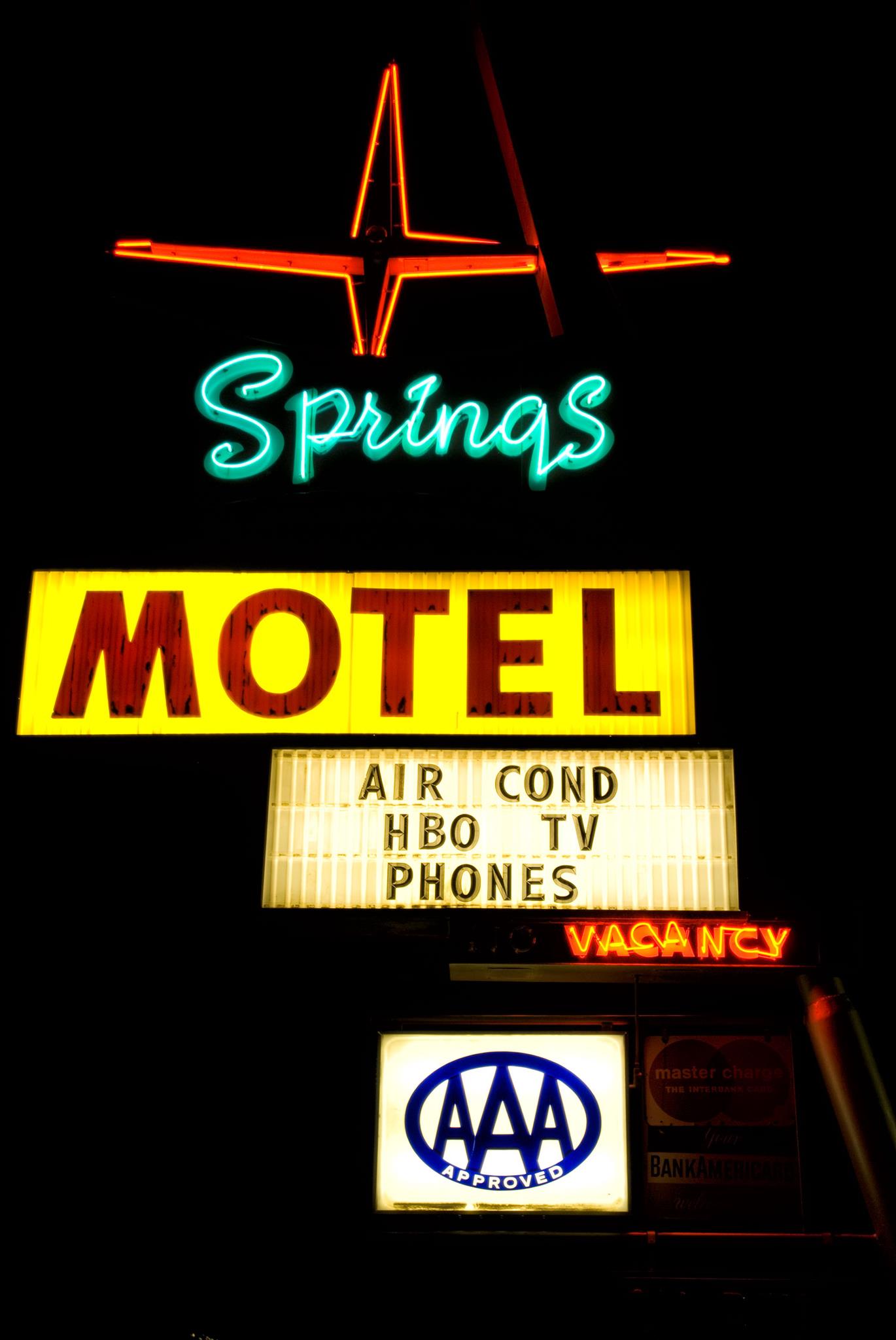This is one on of my favorite signs, one of my favorite places, and one of my favorite memory holes – the Lariat Motel, in Fallon, Nevada. I have already written a lot about the Lariat and hope to consolidate it all one day, so I don’t want to go into too much detail here. Suffice it to say that it transported me to another dimension. The Lariat was not only a true time capsule of decor and service, but I used to feel that it was some kind of cosmic portal, as well. It gave me a thrill to know that I’d be pulling into Fallon at night, pulling up at the office parking spot, seeing the old man’s ancient gold Buick, and then waiting for him to lurk out of his living room, behind the front desk, to check me in. Imagine the horror and sadness I felt the day I pulled into Fallon for gas and saw that the place was gone. He had died and his son had almost immediately had the place pulled down. It was a vacant lot with one small remnant of the sign remaining and “For Sale” sign posted. I was told by the women across the street – the ones who owned the curio shop – that he had donated the sign to the City of Fallon. I wonder where it is now? The old man was so proud of his sign.
