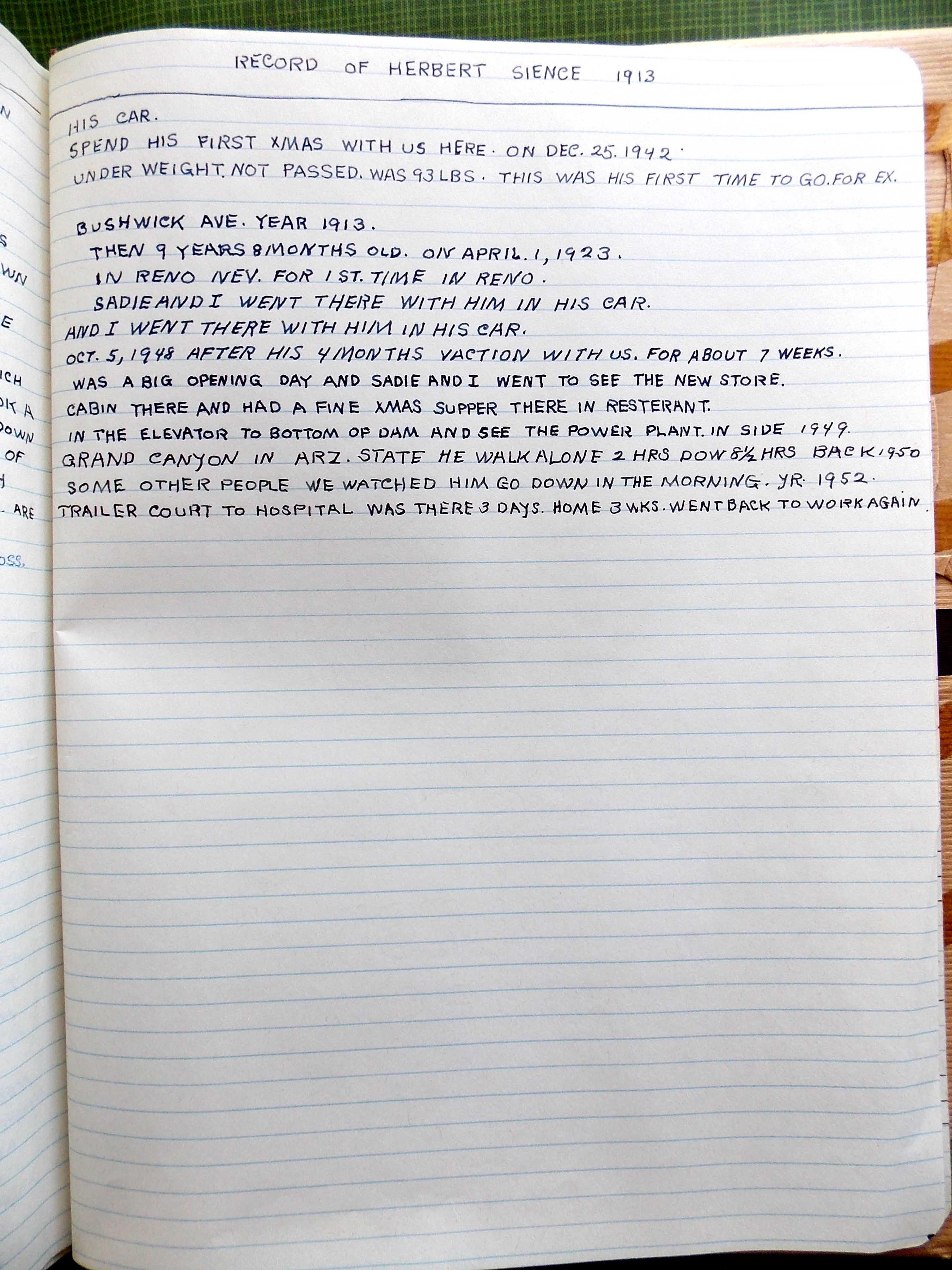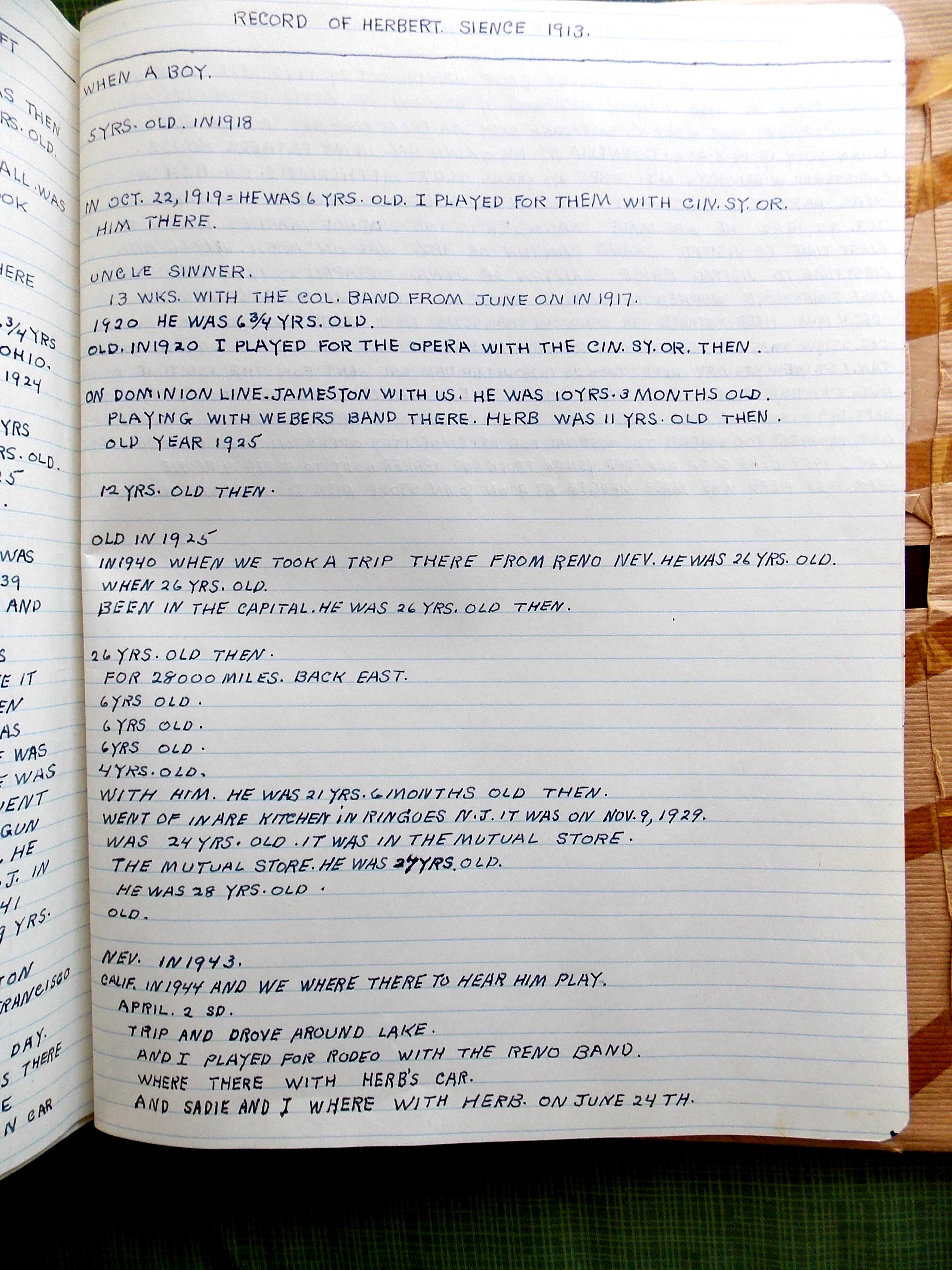 When Herb gave his father a journal for Christmas in 1944, JOSEPH RINGER put it to good use. In addition to his remarkable commentary that spanned the years 1944 to 1963, he liked to make lists. This is one of my favorites…Herb’s “Firsts.” —JS