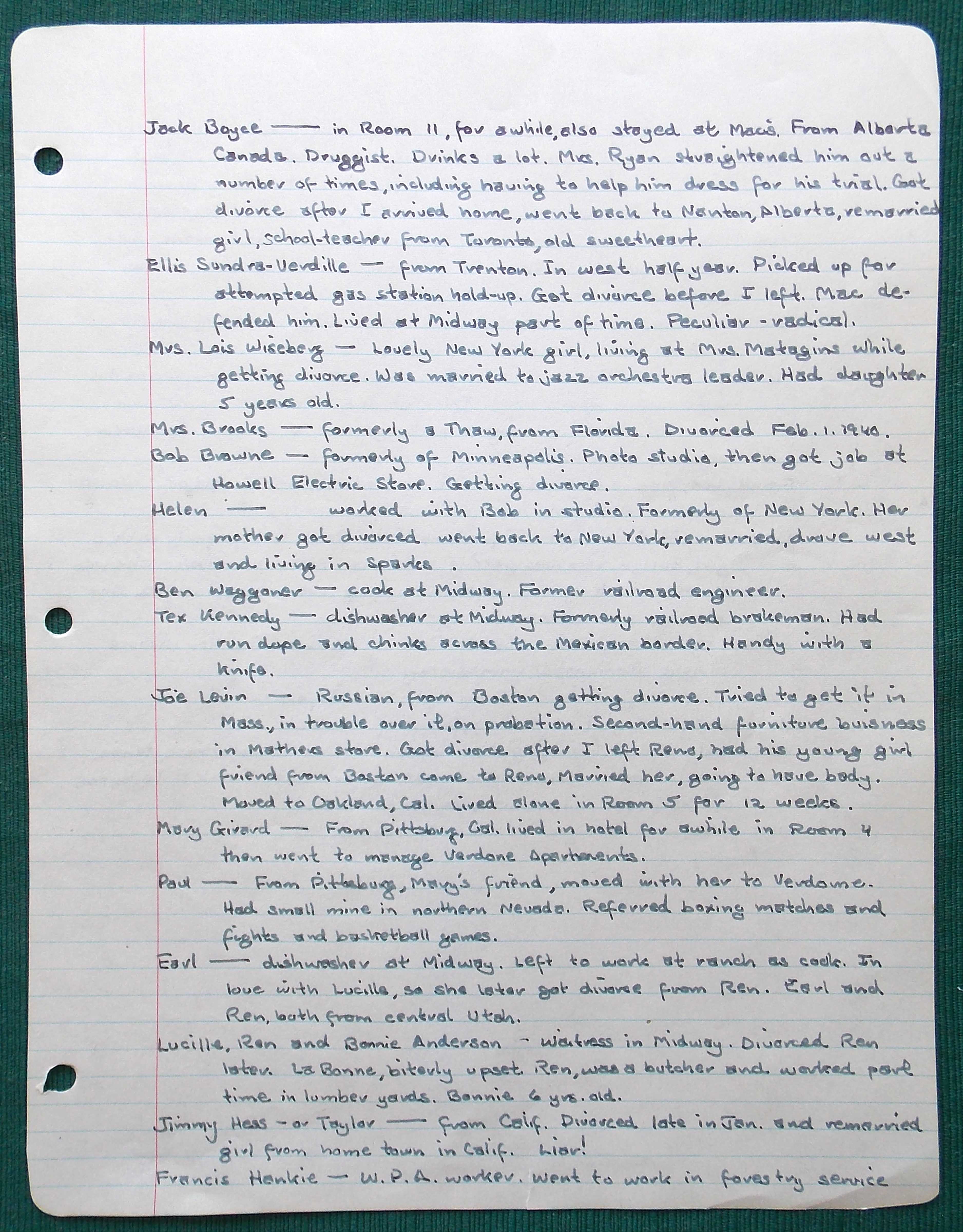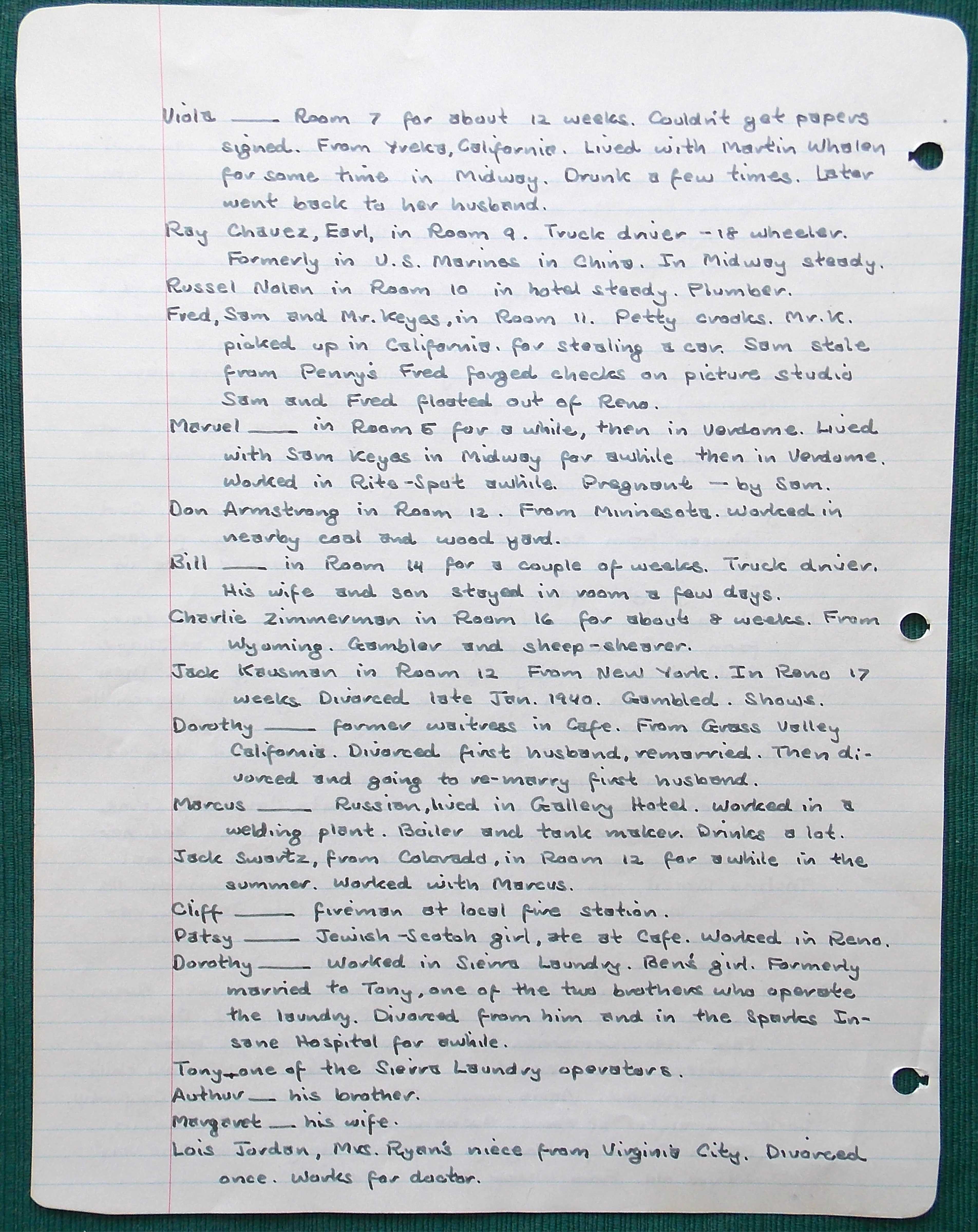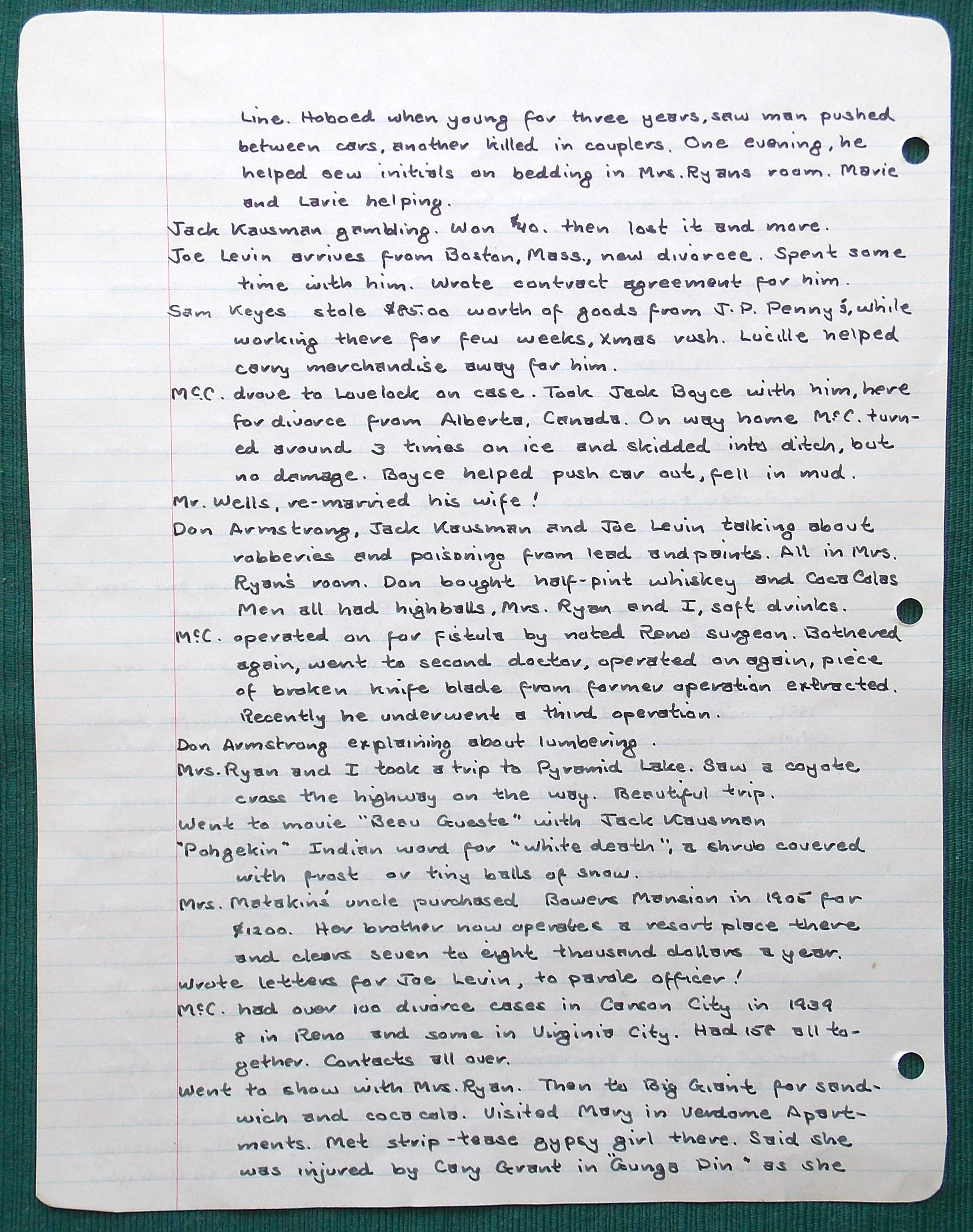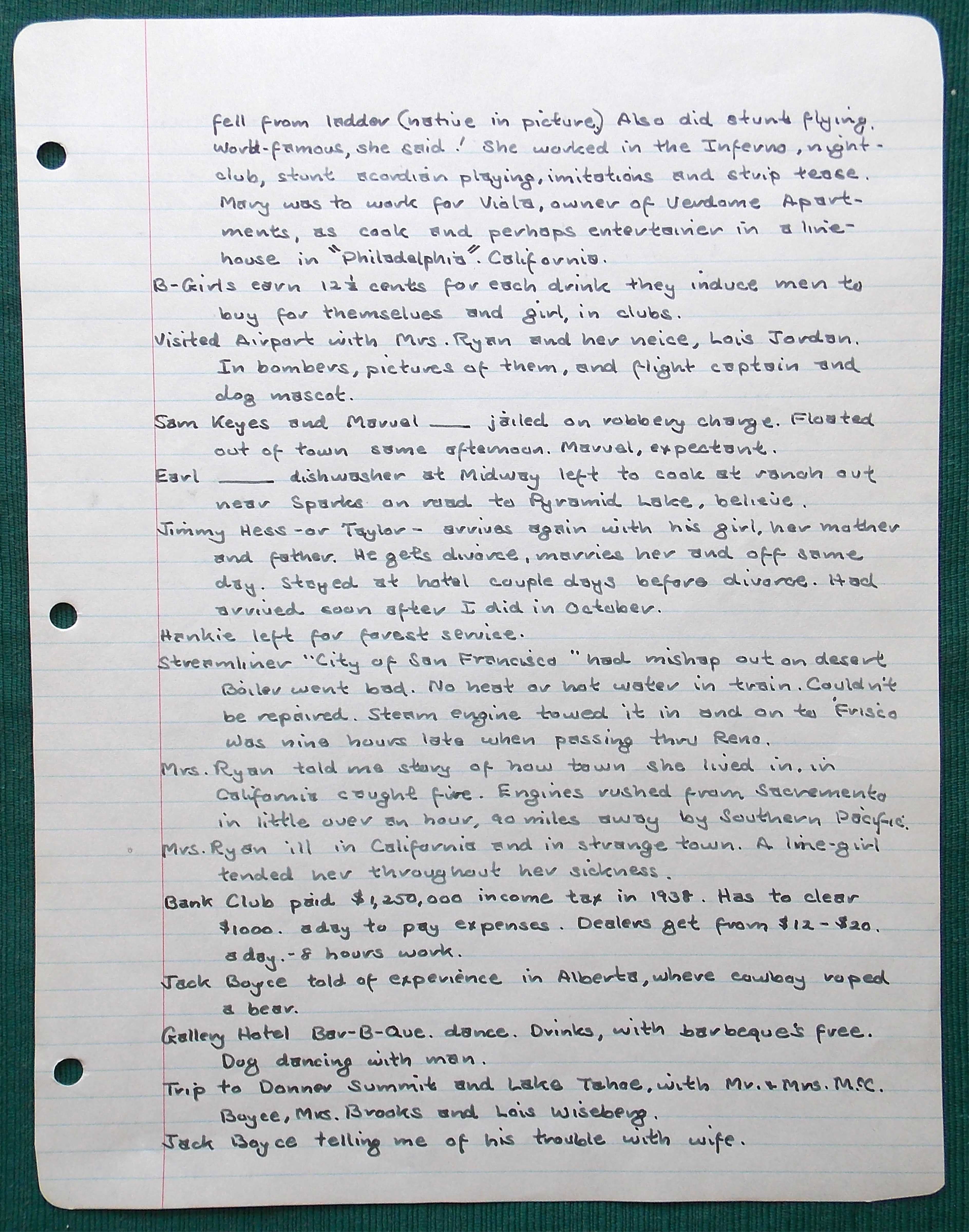 He stayed at a small boarding house on Virginia Avenue for the next several months. While he was there, Herb recorded his observations…