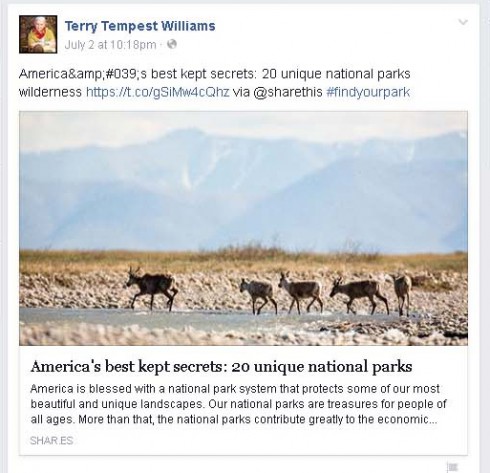 This time, the “best kept secrets” list didn’t ruffle a feather and the link was posted on numerous “green” sites. Even the noted author and environmentalist Terry Tempest Williams linked the Wilderness Society’s promotion on her public facebook page. Comments from her followers were almost entirely favorable.
