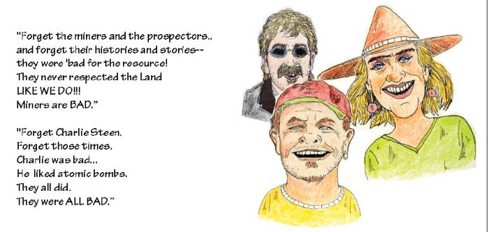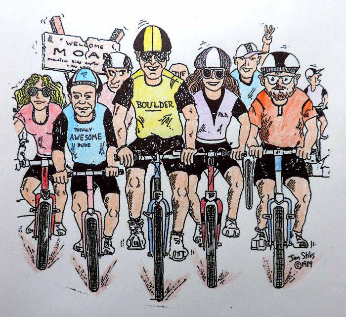 Every time I see that Mountain Biker with the “Boulder” t-shirt, I cringe and wish they had never invented the damn things… I’ve lived in Boulder for 37 years and my visits to the Moab area pre-date the mountain biking boom, but I know I was just the advance squadron of the Colorado invasion. I recall the mountain-bike boom hitting Boulder in the mid-80s along with the whole “extreme sports” and “he who dies with the most toys wins” enthusiasms which rendered my old-fashioned tree-hugging smell-the-flowers style of outdoor education and environmentalism an anachronism. Now! We have the advent of “fat bikes”. At least they don’t tear up ski trails the way snow-shoes do…