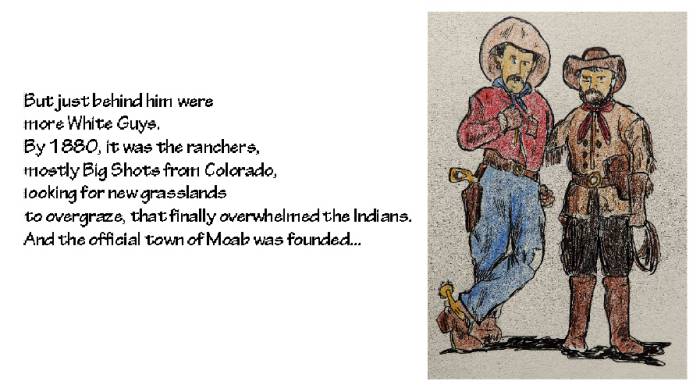 “Tecumsah” —I can only depict the events of Moab’s history as they actually happened; its history is no different than most other communities on the North American continent. And this series has just started…there’s more to come..JS