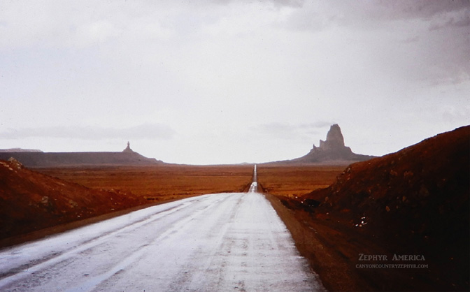 Perhaps the most iconic, some might argue over-used image of Monument Valley. This photograph was taken by Edna in 1964 but the very same shot has appeared in countless tv commercials and print ads. And, of course, in movies. It was near this spot that Forrest Gump decided he’d run enough and left his followers standing flatfooted and lost. We suppose he walked back to Kayenta and caught a bus.