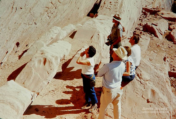 An NPS ranger describes rock art to tourists at Canyon de Chelly