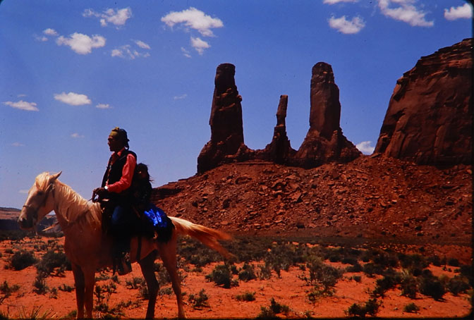 Ted Cly, Effie’s husband, at Monument Valley. Three Sisters behind him. 1965