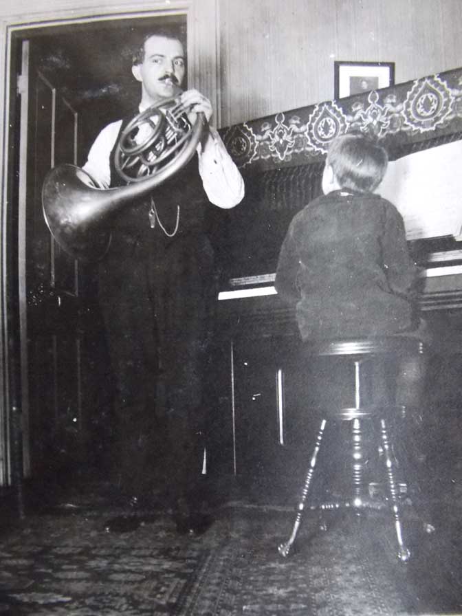 “My father only had to play with the band in the evenings at the park so we had a lot of time to see many things. My mother and I sat on the grassy lawn and listened to the concerts each evening. We were there for most of the summer; then we’d return to Cincinnati and he’d play with the orchestra. I went to my first concert when I was five and I remember that with a shaking finger my father told me to be very quiet and not talk or rattle a paper or in any way disturb the other people who had come to enjoy the concert.