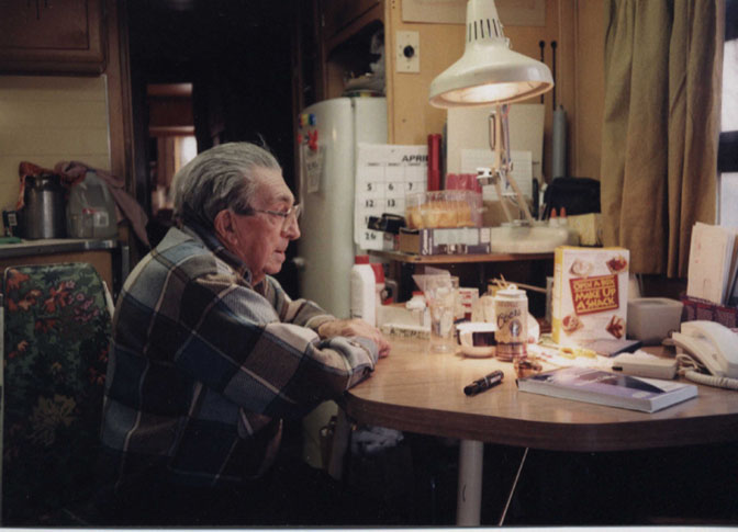 Herb Ringer paused for a moment, then pushed his chair slowly away from the table and stood up. He turned and walked down the darkened hallway to the bedroom of his trailer, the same travel trailer he has lived in since 1954.
