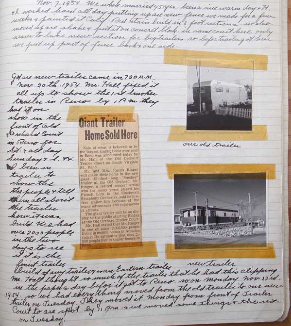 Sale of what is believed to be the largest trailer home ever sold in Reno was announced today by Mr. Hall of the Old Orchard Trailer Court on South Virginia St. Mr. and Mrs. Joseph Ringer and son Herbert will make their home in the new giant 45 foot “Smoker” trailer at the Old Orchard…The giant trailer will be on display to the public starting Friday.