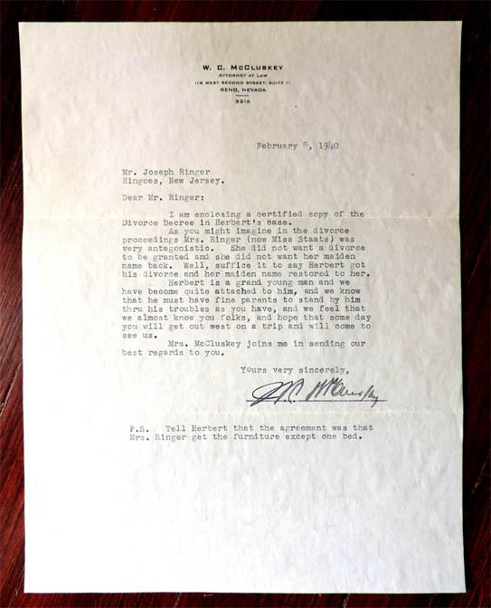 Thanks Donna. To think you and Gail were living just a few hundred miles south of the Ringers and had already been there for years when Herb arrived in Reno is amazing. Thanks for all your input.