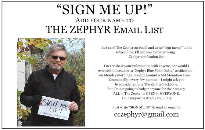REMEMBER! I’D LIKE TO HEAR FROM ZEPHYR READERS. TO COMMENT ON THIS STORY, PLEASE SCROLL TO THE VERY BOTTOM OF THIS PAGE.