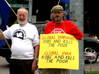 We have a thriving antiwar demonstration going in Yellow Springs, a town that served as an Underground Railroad station for blacks escaping slavery. Once, we were visited by three men from Pakistan who were defending Islam. We have been interviewed several times by the local paper.