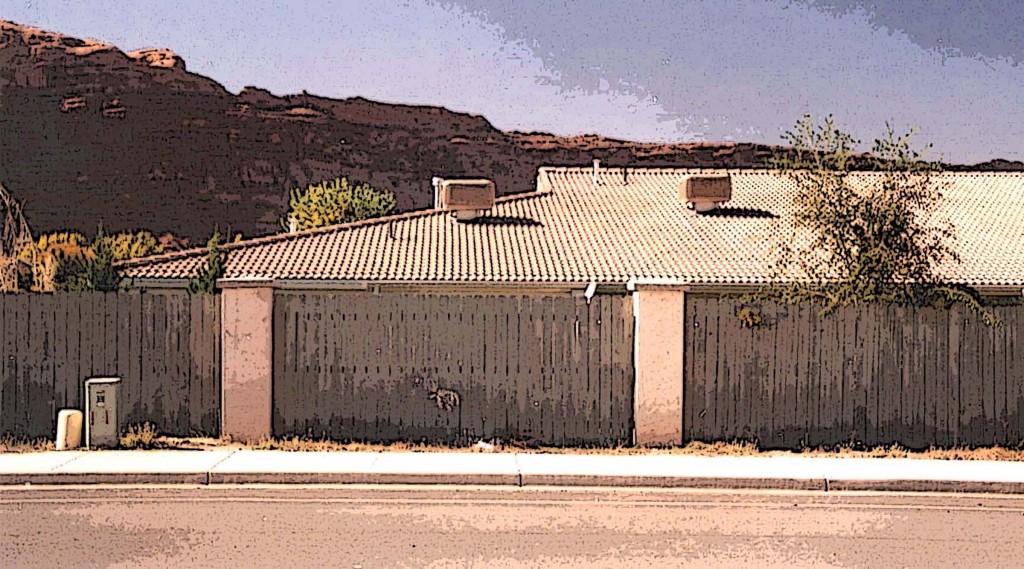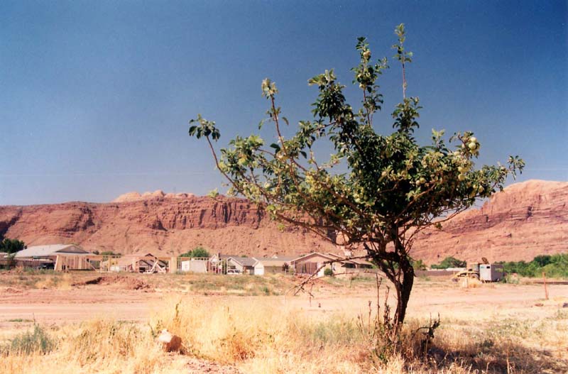 As real estate prices skyrocketed in the 1990s and the price of fruit plummeted, many of Moab’s orchards were sold off. The above image with its ‘For Sale’ sign is from the early 1990s. A decade later, at the exact location, I took another photograph of Orchard Villas subivision.