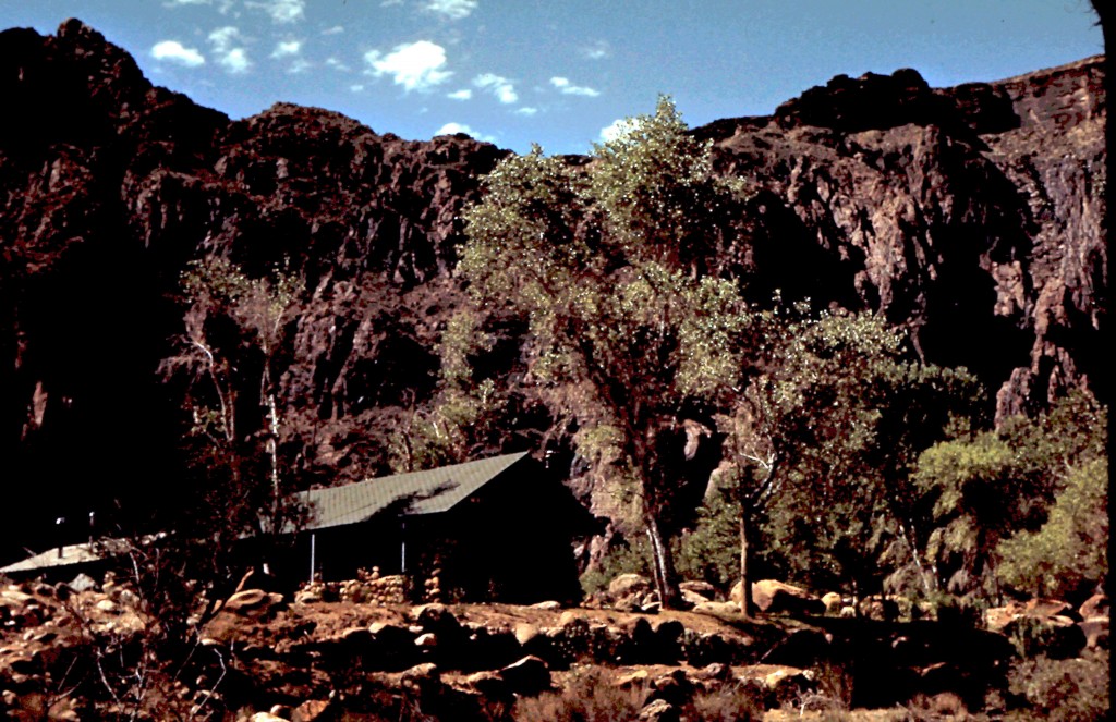 Shorty had been in Texas and he was incarcerated for stealing cattle and then horse stealing. So he spent some time in a steel and concrete apartment, if you know what I mean. He came out to the South Rim and the Fred Harvey people gave him a job, down in the canyon, to erect a fence to lay some rip wrap on Bright Angel Creek. He worked with a pair of big, grey horses, and a Fresno Scraper, which is sort of a glorified wheel barrel without a wheel. Anyway he hauled all these rocks and built up the creek sides. He also planted all the cottonwood trees at Phantom Ranch.