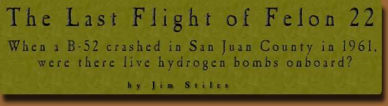 Speculation focused on FELON 22’s payload. Although the flight was called a “training mission,” could the B-52 have been equipped with nuclear weapons? And how could Colonel Watts, who arrived from Biggs Air Force Base within 12 hours of the crash, have been uncertain of possible on-board weapons? Is that why the area was closed? To search for a missing hydrogen bomb?
