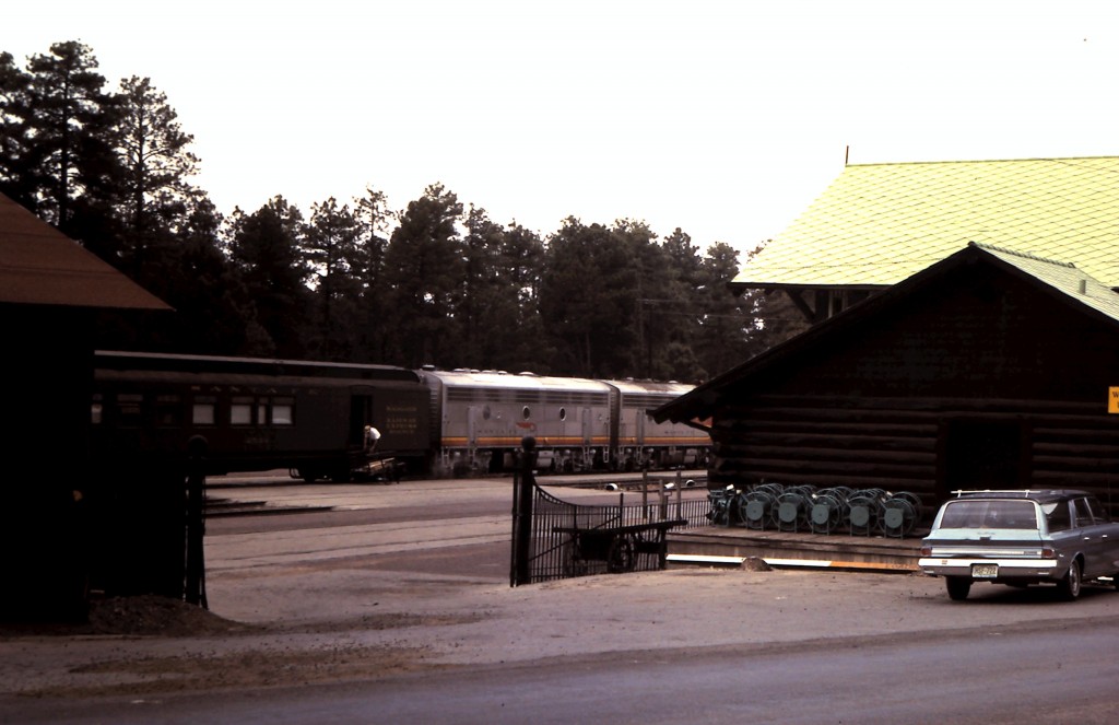 The Santa Fe station at the South Rim of the Grand Canyon in 1966. Regular runs were still being made from Williams to the South Rim.