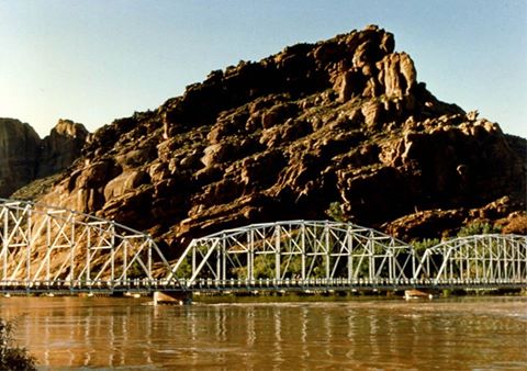 The FIRST COLORADO RIVER BRIDGE at MOAB by HERB RINGER. 1950