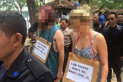 EXCERPT: A pair of western tourists have been paraded around an Indonesian island in a “walk of shame” for an alleged theft.