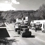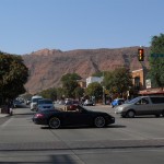 I saw fellow Moab resident Lucy Wallingford appreciating the relative quiet and especially how empty Main Street was. To emphasize the point, I asked Lucy if she would lie down in the middle of the turning lane. Lucy quickly assumed a location at the pointy end of the arrow. (I should note that this was a staged photograph. Lucy was not lying there before I arrived.)